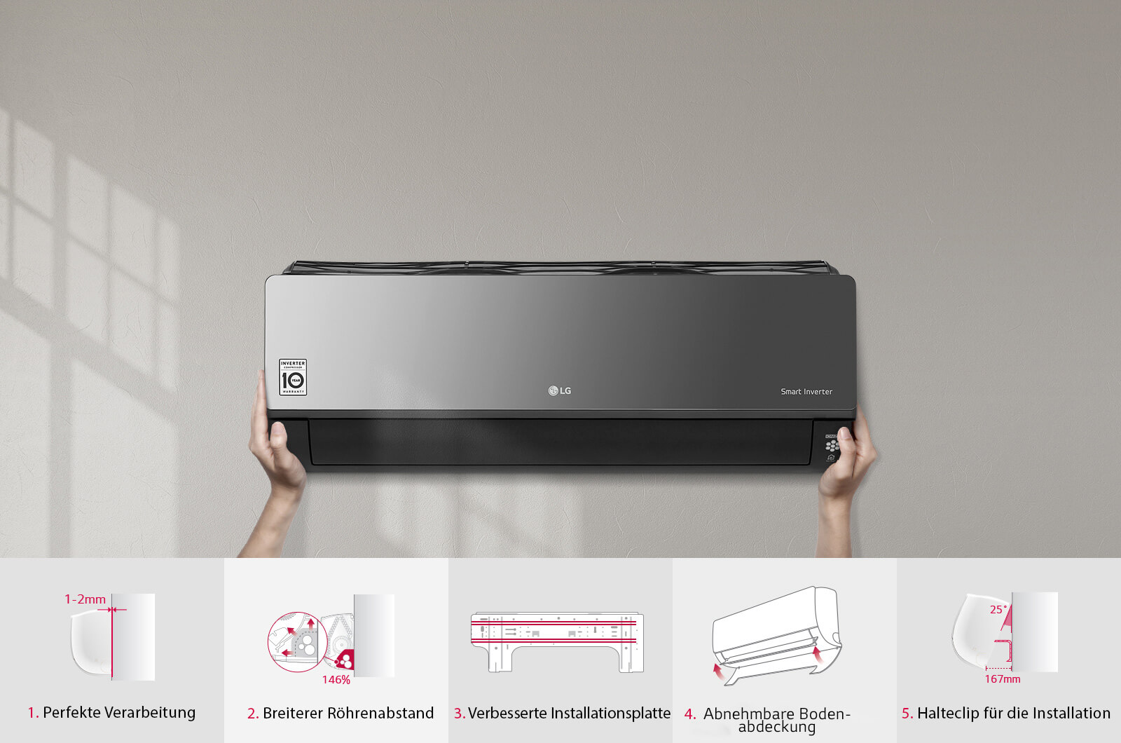 LG air conditioners allow for easy and efficient installation regardless of the environment and people available for installation. By requiring fewer people and less time for installation. it is now possible to install more air conditioners in more homes with less time.