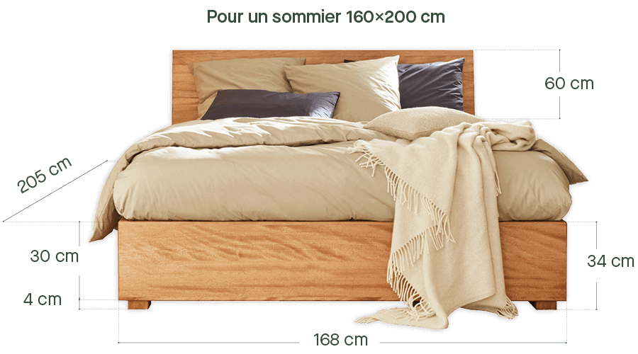 External dimensions/size: Bed frame (160x200): 168x210 cm. For other sizes, add +8 cm in width and +10 cm in length.