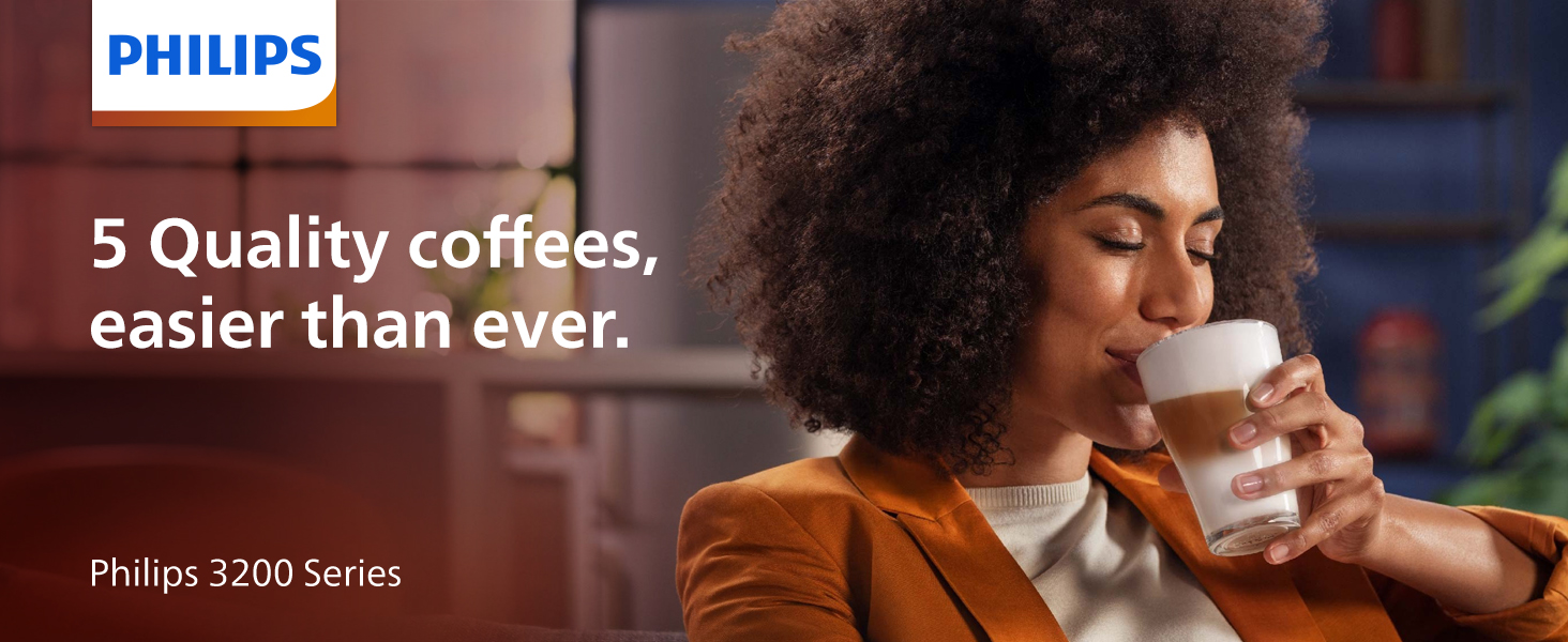 Home / Coffee Machine / PHILIPS 3200 Series Fully Automatic Espresso Machine - LatteGo Milk Frother, 5 Coffee Varieties, Intuitive Touch Display, Black, (EP3241/54)