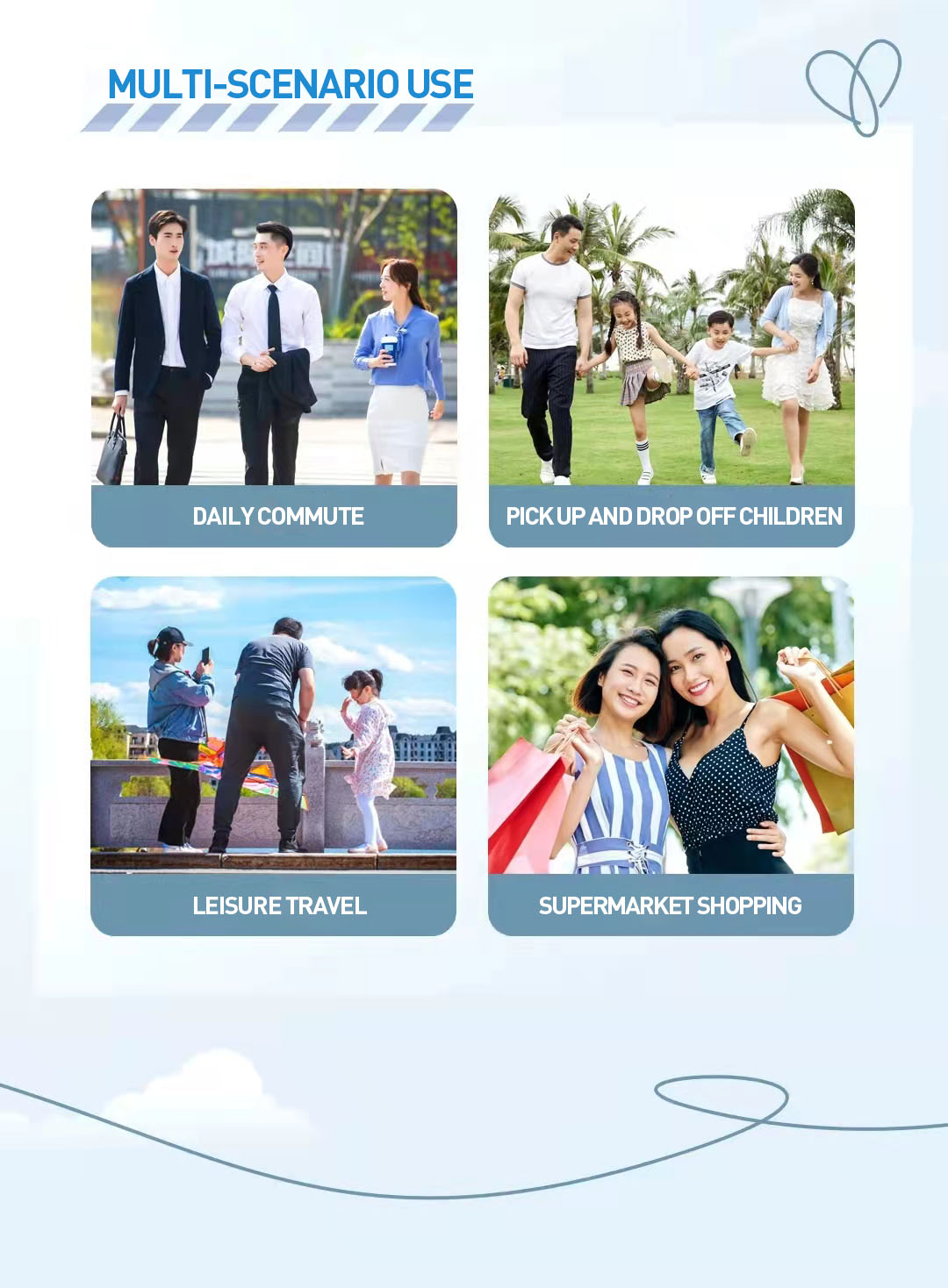 Safety design: double bumpers are set at the front and rear. The front of the car is equipped with highly translucent headlights and the rear is equipped with through-type taillights. Three-wheel linkage braking. short braking distance. safe and guaranteed
