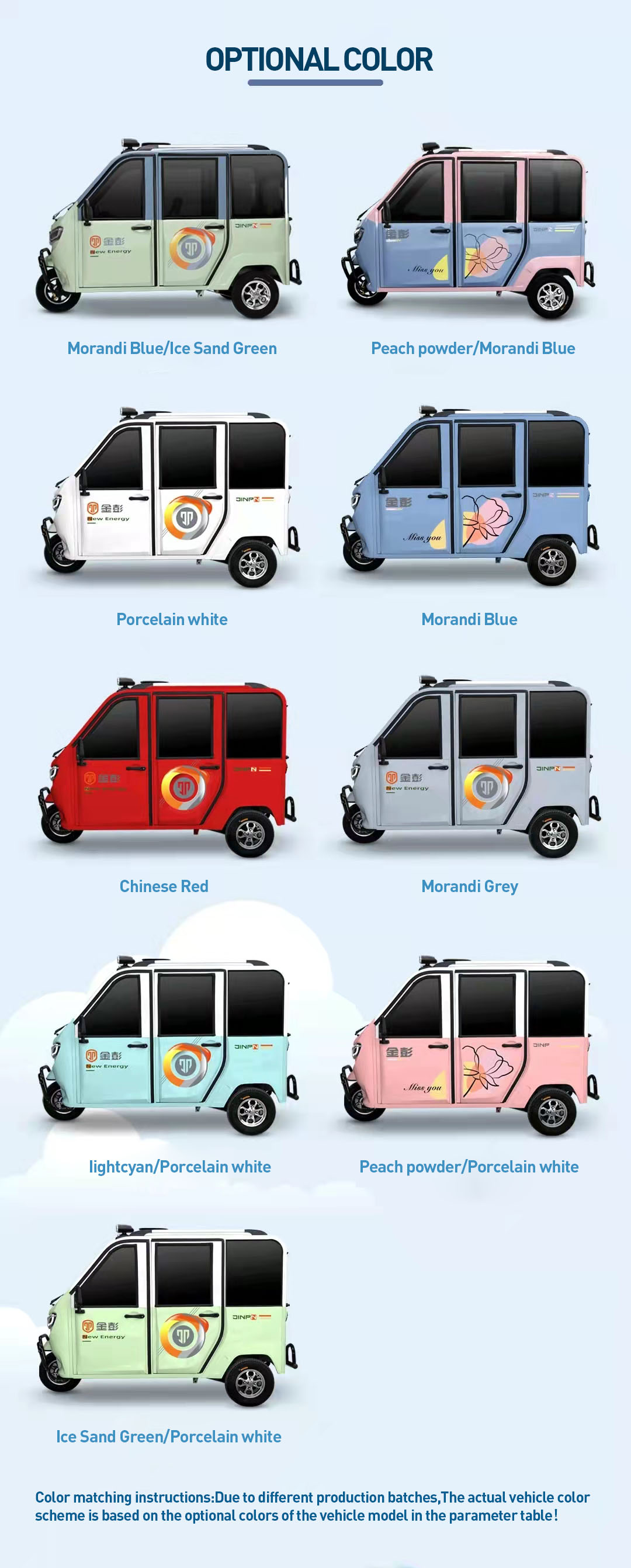 Large space: The entire vehicle size is 2500*1195*1670mm and the vehicle length is 2.5 meters. which makes the vehicle feel larger. The rear seats can be folded to increase cargo space.