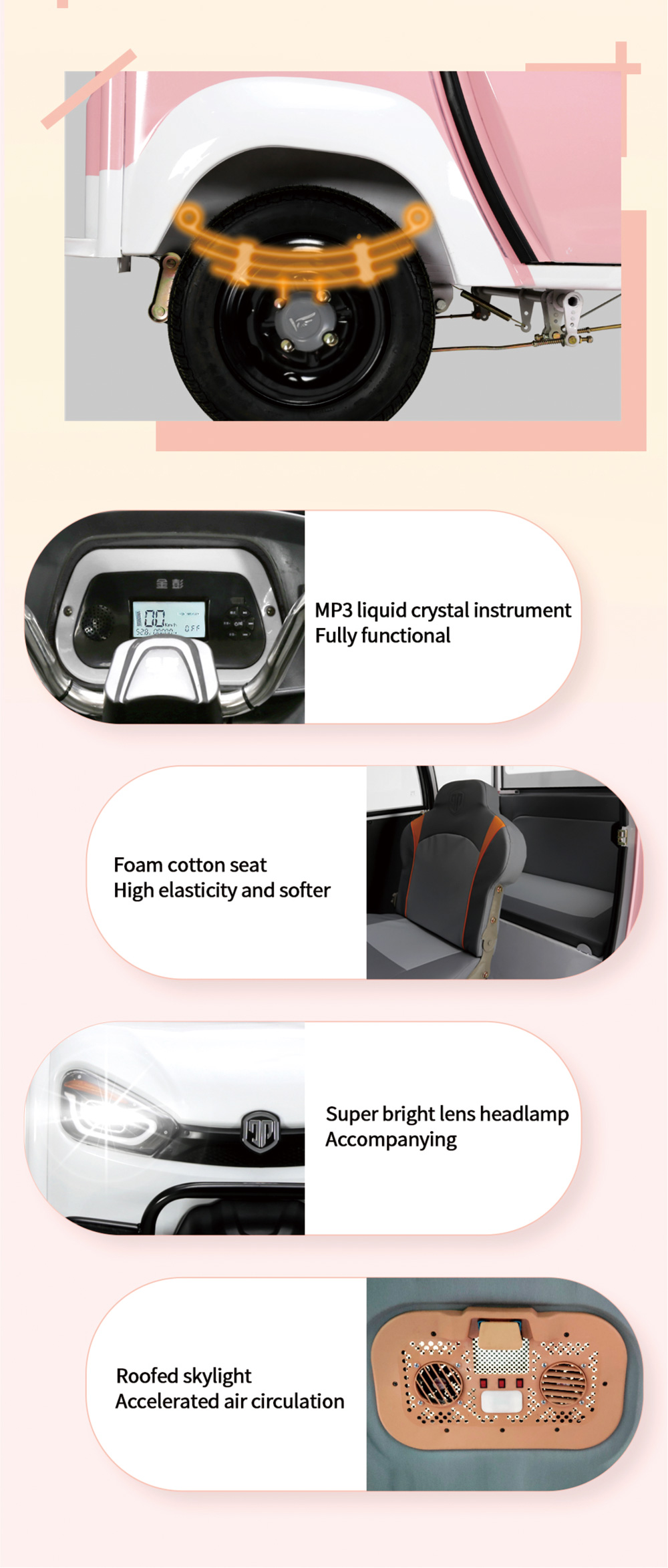 • Rear steel plate shock absorption. stable and reliable. easy to ride on bumpy roads