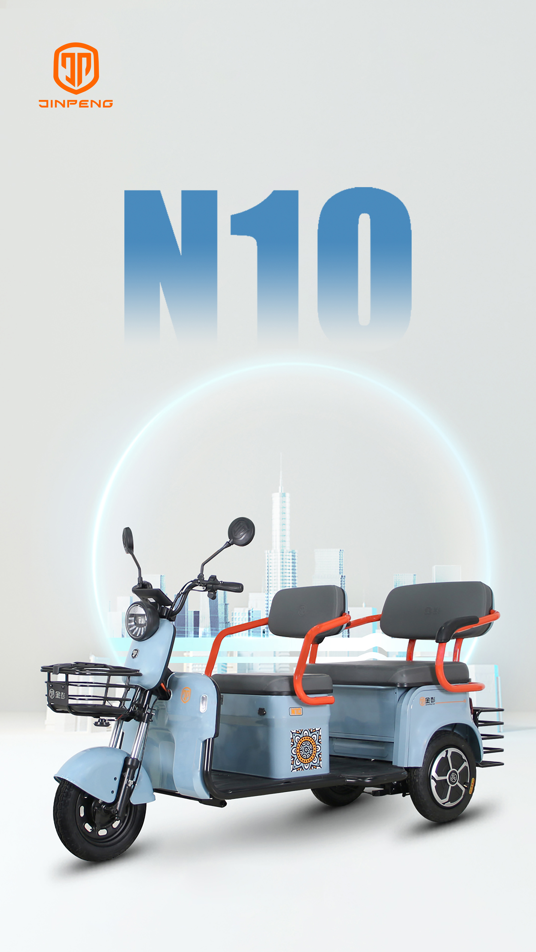 The Jinpeng N10 electric leisure tricycle. with its unique design and superior performance. meets the dual needs of modern young people for fashion and practicality. Whether for urban commuting or outdoor trips. the N10 provides a safe. comfortable. and enjoyable riding experience. Choose the Jinpeng N10 and embrace a fashionable and convenient lifestyle.