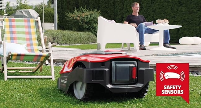 In addition to a deep-drawn apron and other structural safety measures. the FREELEXO robot lawn mower has a safety sensor system with impact. tilt and lift sensors. so that it can detect obstacles early and independently and stop the blades if necessary.
