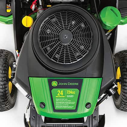 Detail24 HP V-twin John Deere branded engine for stronger performanceJohn Deere Easy Change system - 30 second oil changeNEW - Easy Read Fuel Gauge - easily see the remaining fuel level