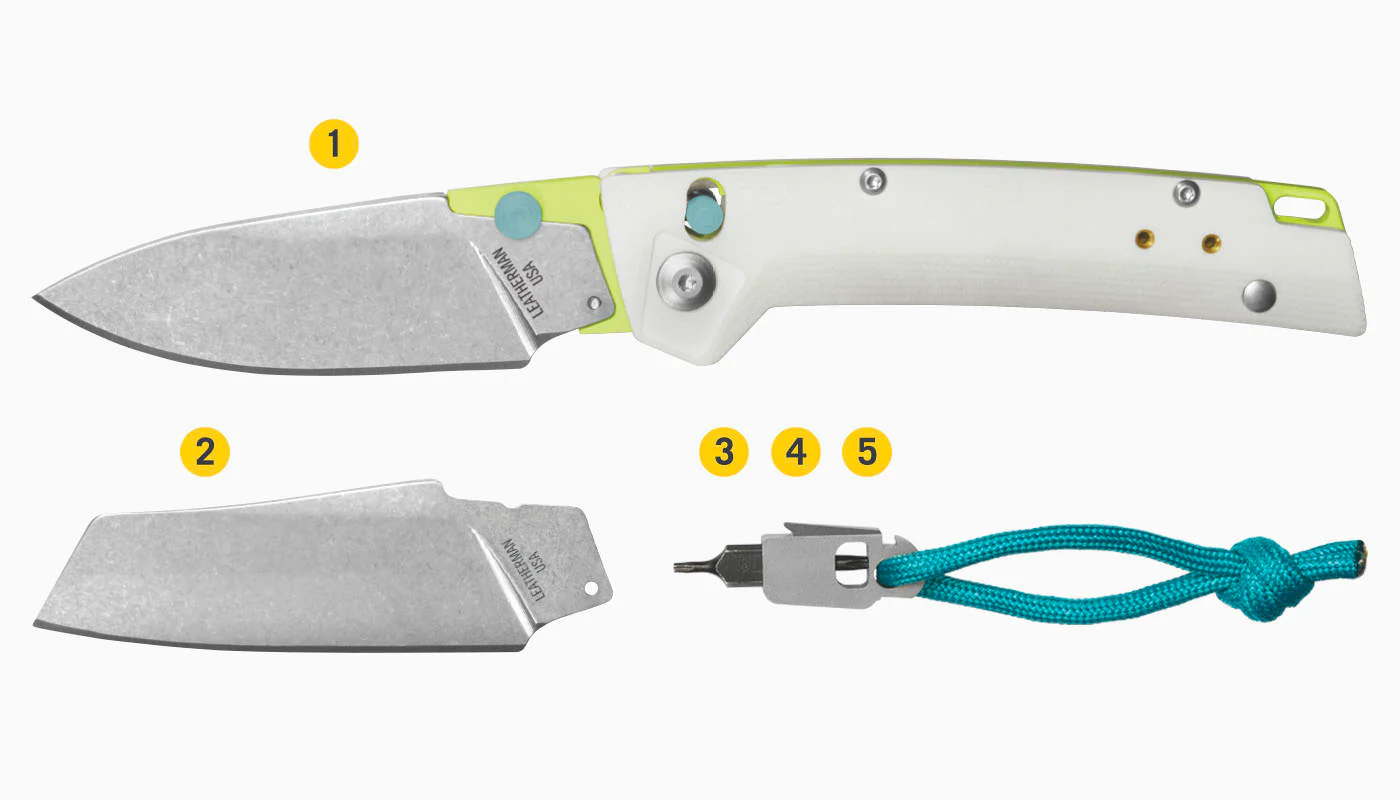 Rooted in our problem-solving spirit, the Garage Batch #003: PARTS release showcases our inventive vision. Our goal is to make the best folding knife possible by using the greatest amount of found resources from the factory. The final product uses 26 parts and includes an innovative interchangeable blade system. Make the knife suitable to your situation and get the most in versatility with the Batch #003: PARTS multipurpose tool. Switch out the work blade with a standard everyday carry (aka EDC) blade, so you can adapt to whatever you need in the moment. The selection of materials, intentional design, and evolved ergonomics give you comfort, confidence, and functionality throughout your day. The blade is simple and easy-to-launch and is operable from a slim, lightweight frame. The G10 handle scales feel and look good and are built to last, just like every product Leatherman creates.
