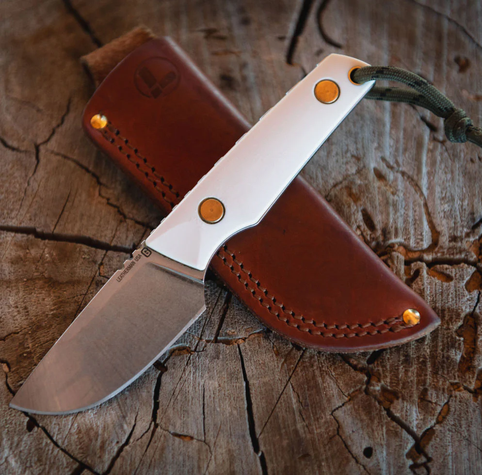 - 04Custom Leather SheathFeatures oil-rubbed, full grain, vegetable-tanned leather made in the USA.