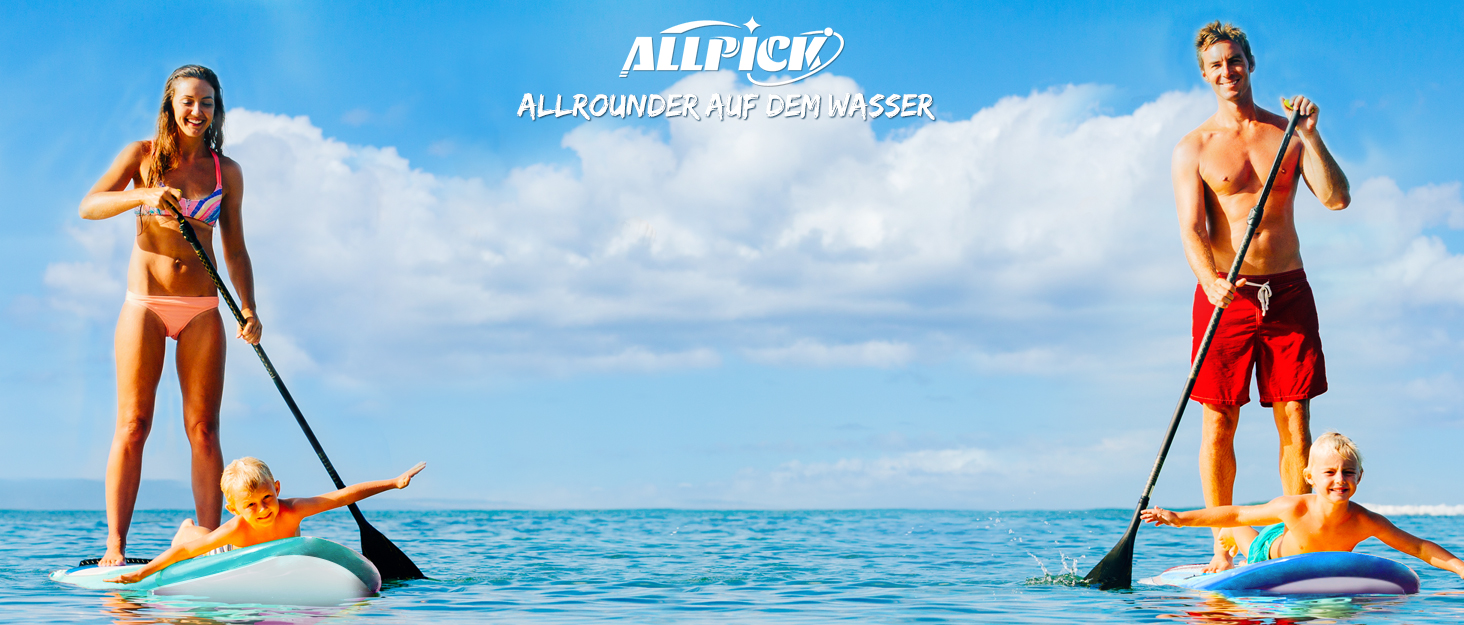 - STABIL. SOBUST UND LANGLEBIG: Das ALLPICK SUP Board verwendet die exklusiv entwickelte Pro-High-Density-Drop-Naht-Technologie und Surface High-Pressure Laminated PVC-Struktur. Material ist macht das Board stärker und langlebiger als die meisten SUP-Boards. Die Abmessungen von 320 cm x 80 cm x 15 cm bieten einen erhöhten Auftrieb & eine größere Stabilität. was es zur idealen Größe für viele SUP Paddler macht