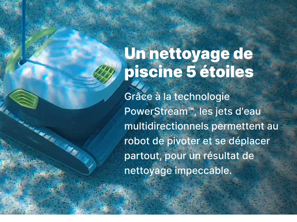 - 5-star pool cleaning: Thanks to PowerStream technology. the multidirectional water jets allow the robot to pivot and move anywhere. for impeccable cleaning results.