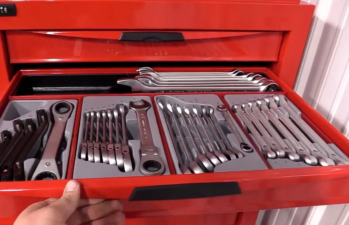 Tool box constructed from heavy gauge, high quality steel features 5-step rust prevention and underlay rubber-coated comfortable carrying handle, 5-inch caster wheels (two swivel and two with brake) for strength and stability, drawer is equipped with a 3-inch robustness Ball earing slide step allows it to be fully extended for greater access to tools and a combination locking system for increased safety.