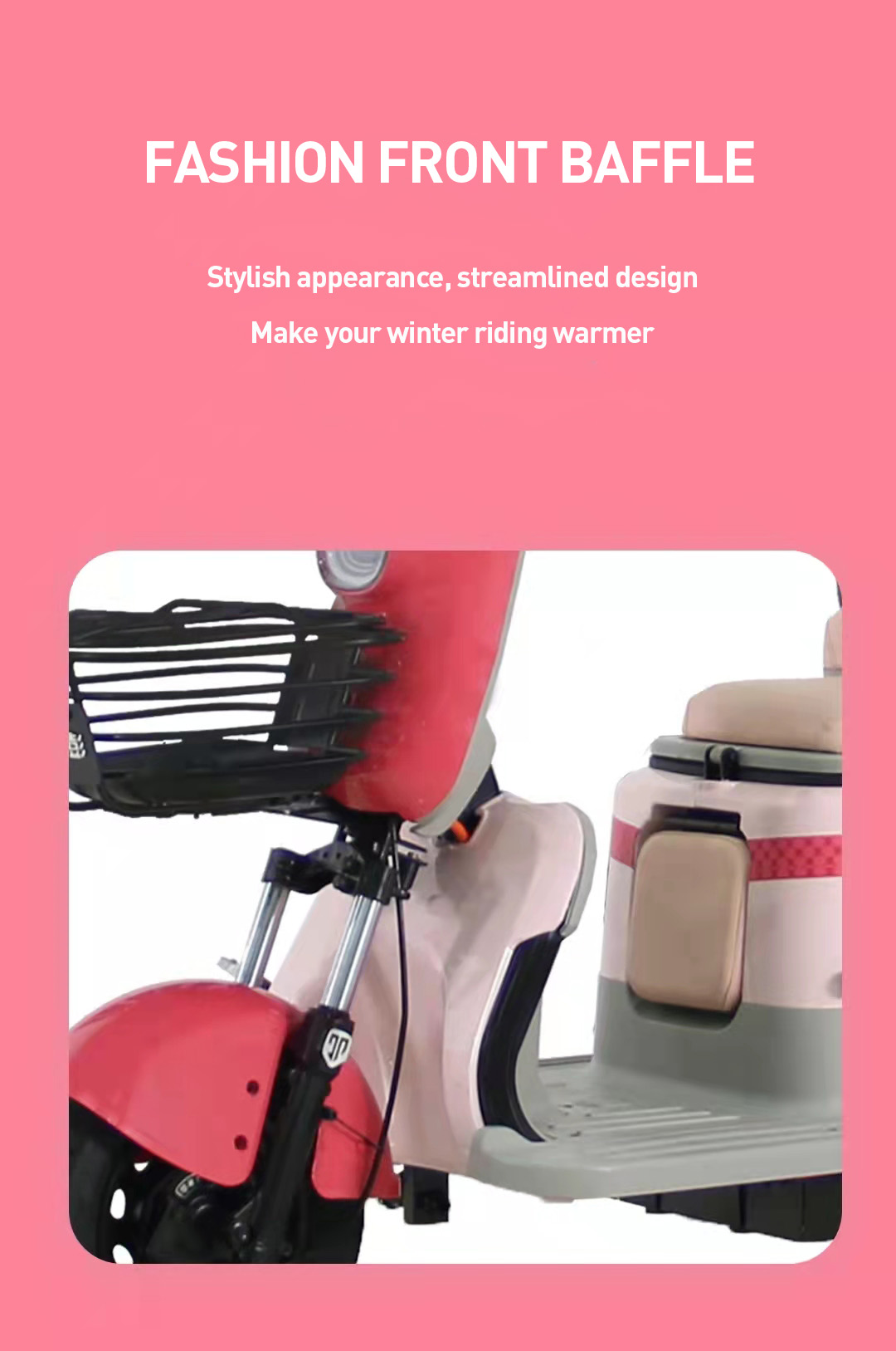 The V3 electric leisure tricycle combines a modern design. innovative seating. clear display. and practical storage solutions. making it the ideal choice for those looking for a stylish. functional. and convenient mode of transportation.
